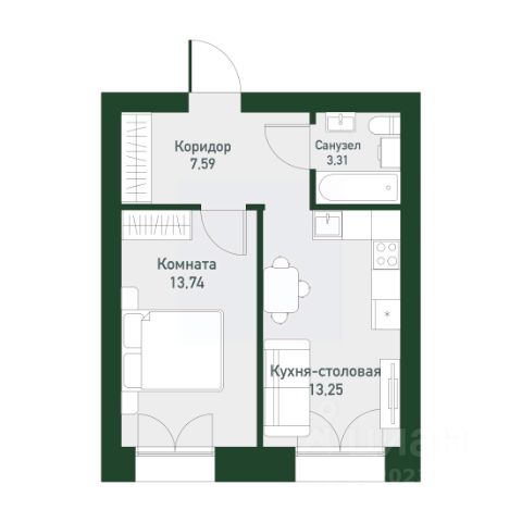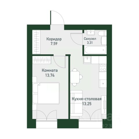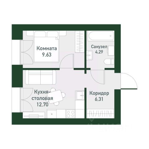 Арт. 131190500 1-комнатная квартира в кирпичном доме в Екатеринбурге.
