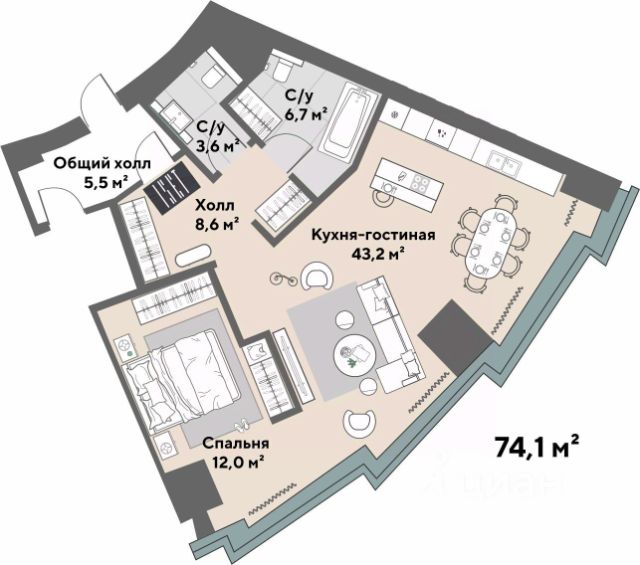 Уникальное предложение - студия + спальня с террасой на 7 этаже!