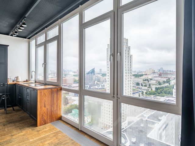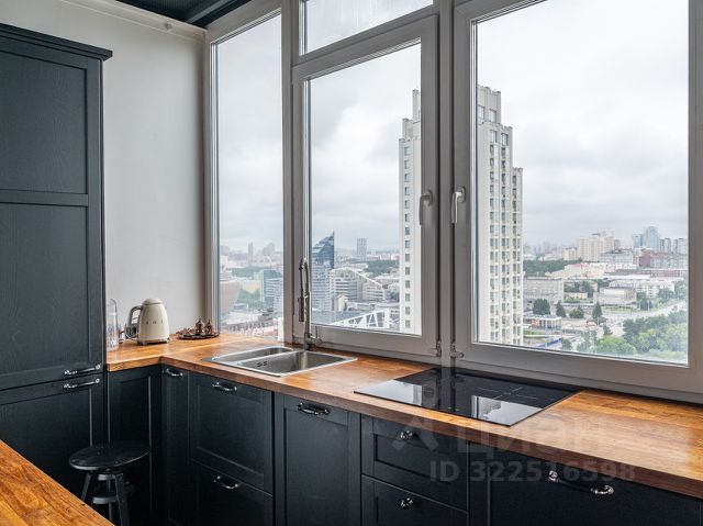 Просторная квартира студия, общей площадью 33.2 м2., распложена на высоком 19 этаже, где открывается шикарный вид на город! Окна квартиры выходят на разные стороны УГМК Арену и Свято-Троицкий Кафедральный Собор, панорамное остекление.