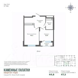 Продается квартира в современном Квартал-парке "Каменные Палатки" новый жилой комплекс комфорт-класса расположен на границе микрорайонов ЖБИ и Втузгородок, в 15 минутах от центра города рядом с природным парком Каменные палатки и озером Шарташ. В продаже 4 очередь (секция 14). Преимущества квартир: • Высокие потолки (2,7 м); • Качественная чистовая отделка: входные двери, ламинат, обои под покраску, установлена сантехника; • Горизонтальная разводка систем отопления свободные стены; • Счетчики на э/э, воду и тепло ежемесячная экономия на коммунальных платежах; • Сделаны входы для слаботочных сетей (интернет, телефон, цифровое телевидение). Преимущества дома: • Просторная закрытая придомовая территория; • Прямо из комплекса выход в природный парк Каменные Палатки; • Просторная наземная парковка и подземный паркинг; • Муниципальный детский сад в 3й очереди на 200 мест; • В жилом комплексе расположены ЖизньМарт, Монетка, Пятёрочка, пункты выдачи ЯндексМаркет, Ozon и Wildberries. Детский оздоровительный центр и стоматологическая клиника. • В нескольких минутах от дома расположены: гимназия 45, пять детских садов, гипермаркет "Магнит Семейный".