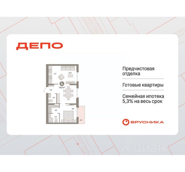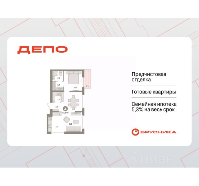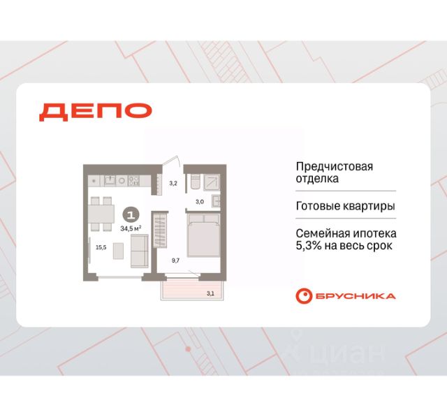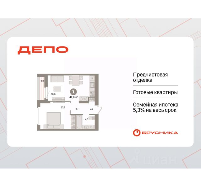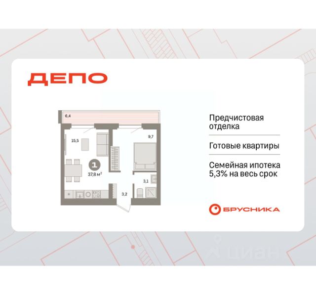 Квартира с кухней-гостиной и одной спальней в квартале "Депо". Особенности планировки: предчистовая отделка, балкон. квартиры в нашей базе: ДЕП07-Ж5.9.2. Квартал "Депо" расположен в активно развивающейся части Сортировки, на месте, где раньше был завод "Электротранс". Преимущества Сортировки — развитая инфраструктура. В пешей доступности — супермаркеты, остановки городского транспорта, поликлиники, детские сады, школы, гимназии, торговые центры, автоцентры, рынок с большим и доступным по стоимости выбором товаров, парк РЖД и парк с аттракционами Таганская Слобода. Квартал "Депо" расположен в границах улиц Пехотинцев — Таватуйская — Сортировочная — Новая (проектируется). Благоустройство квартала основано на трёх принципах. Первый — особое внимание к воде. Архитекторы Брусники создадут внутри застройки систему дождевых садов, которые будут фильтровать сток (в том числе с крыш зданий) и снижать нагрузку на ливневую канализацию . Второй принцип — разнообразие. Мы высадим на улицах ивы, липы, яблони разных сортов, спиреи, лапчатку и дерен, а во дворах — березы, липы, черёмухи, пузыреплодник, кизильник и манчжурский орех, который в Екатеринбурге почти не представлен. Третий принцип — зонирование. Центральный бульвар мы насытим площадками для игр детей и спокойного отдыха взрослых, на площади перед детским садом расположим окруженные деревьями плэйхабы, летние веранды кафе, открытое пространство с запоминающимся артом. #2Sc7uC
