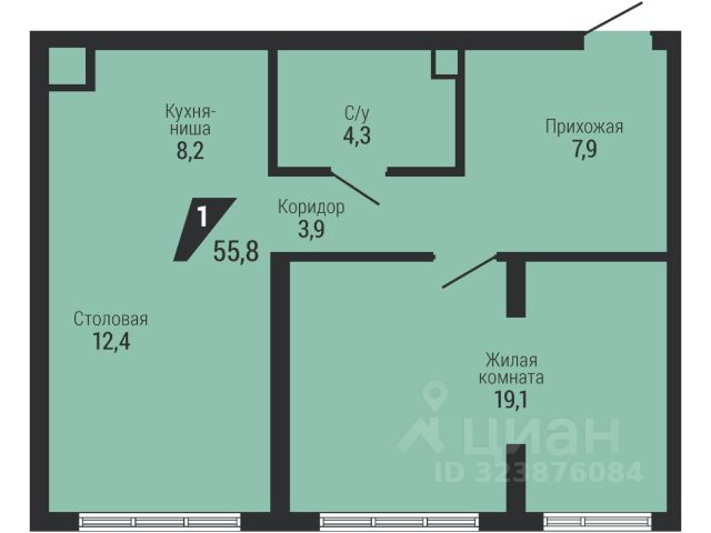 Однокомнатная квартира с предчистовой отделкой в ЖК "Соната Парк" на 15 этаже. Общая площадь: 39.7 кв.м., жилая: 12.03 кв.м., площадь просторной кухни-столовой: 17.04 кв.м. Все окна выходят на одну сторону. В квартире одна лоджия, один совмещенный санузел. Высота потолков 2.72 м.