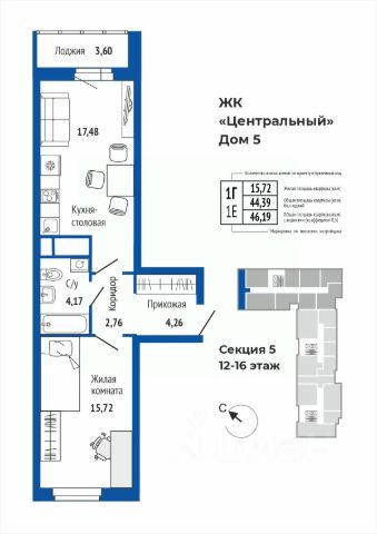 Продается 1-к квартира в жилом комплексе Центральный 5