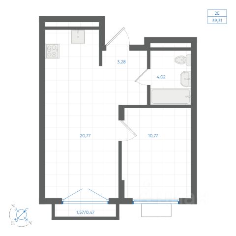Квартира с кухней-гостиной и одной спальней в квартале "Депо". Особенности планировки: вид во двор, предчистовая отделка, балкон.