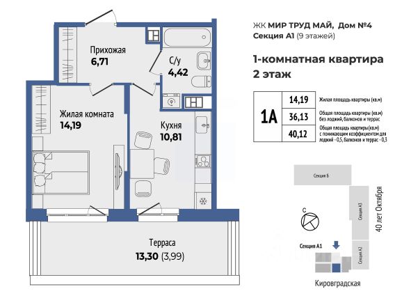 Продаётся 1-комнатная квартира в сданном доме (Краснофлотцев, 40 (Дом 1.1)), срок сдачи: IV-кв. 2024, общей площадью 40.2 кв.м., на 10 этаже. Новый жилой комплекс "Новация" от застройщика "Астра-Девелопмент" расположен по адресу: г. Екатеринбург, улица Краснофлотцев.