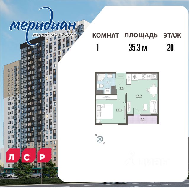 Продается 1-комн. квартира с европланировкой, площадью 35.3 м2 в монолитно-кирпичной новостройке в 11 мин. транспортом от м.Чкаловская. Возможен вариант покупки с использованием ипотечных средств, есть рассрочка. Жилая площадь 11 м2, кухня 15.3 м2, чистовая отделка. Раздельных санузлов - нет, балконов - нет, лоджий - 1. Квартира располагается на 20 этаже 24-этажного дома в ЖК Меридиан. Застройщик - Специализированный застройщик ЛСР. Недвижимость-Урал, сдача дома - I квартал 2026 года, высота потолков 2.5 м. Парковка автомобилей - наземная. Инфраструктура: школа, детский сад, детские площадки, спортивные площадки, места для отдыха, супермаркет. "Меридиан" - уютный жилой комплекс от "Группы ЛСР", который расположен в активно развивающейся части Екатеринбурга - Академическом районе. За счет близости лесного массива и реки Патрушихи в локации сложилась благоприятная экологическая обстановка. В состав жилого квартала "Меридиан" входит шестнадцать панельных домов высотой от 8 до 25 этажей с разноцветными фасадами, а также здание образовательного центра. Новостройка расположена в юго-западной части Екатеринбурга, недалеко от ЕКАД, на границе микрорайонов Академический и Широкая речка, рядом с улицей Суходольская, по соседству с малоэтажным кварталом "Мичуринский". Позвоните и узнайте условия покупки прямо сейчас!