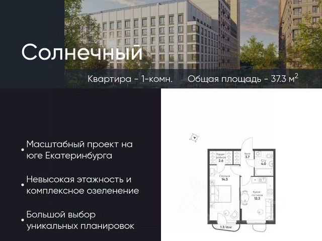 Квартира с кухней-гостиной и одной спальней в районе Шишимская горка. Особенности планировки: предчистовая отделка, балкон.