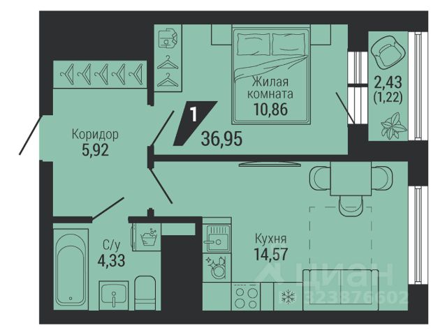 Кухня и санузел могут быть включены в ипотеку 1-комнатная квартира с отделкой от застройщика в районе Кировский в городе Екатеринбург.