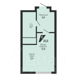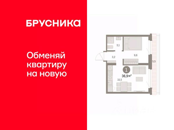 Квартира с кухней-гостиной и одной спальней в квартале "Траектория". Особенности планировки: балкон, предчистовая отделка.