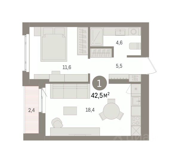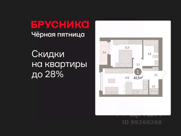 Однокомнатная квартира с предчистовой отделкой в ЖК "Квартал Траектория" на 7 этаже. Общая площадь: 42.5 кв.м., жилая: 11.3 кв.м., площадь просторной кухни-столовой: 17.6 кв.м. Все окна выходят на одну сторону. В квартире одна лоджия, один совмещенный санузел. Высота потолков 2.82 м. Дом монолитный, многоподъездный, переменной этажности, от 7 до 16 этажей. Квартира находится в 1-й секции высотой 16 этажей в корпусе 1-2. На этаже 6 квартир. В подъезде 1 пассажирский и 1 грузовой лифт. Начало строительства - 4 квартал 2025 года. Окончание строительства - 4 квартал 2027 года. Оформление сделки по договору долевого участия. Квартира с кухней-гостиной и одной спальней в квартале "Траектория". Особенности планировки: гардеробная, лоджия, предчистовая отделка. квартиры в нашей базе: МНВ01-Ж9.7.3. Квартал "Траектория" строится в границах улиц Билимбаевской, Расточной, Монтажников и Маневровой Раньше здесь находился оборонный завод 5-ЦАРЗ, основанный в 1945 году. После войны он ремонтировал военную и грузовую технику — от "Виллисов" и "Студебекеров" до советских ЗИС-5 и ГАЗ-67. Сортировка — район с развитой инфраструктурой, обжитыми жилыми кварталами разных эпох и большим количеством парков. До центра Екатеринбурга — 20 минут на машине. Туда же можно отправиться на автобусе: ближайшая остановка общественного транспорта — в 4 минутах от "Траектории". Рядом с "Траекторией" расположены магазины, торговый центр, детские сады, школы, поликлиники и полезные сервисы, а также другой проект Брусники — квартал "Депо". Если хочется развлечений, можно отправиться в ТРЦ "Карнавал" и парк с аттракционами "Таганская слобода" — дорога туда займёт не более 10 минут на машине. Квартал "Траектория" — первый этап комплексного развития территории, которую раньше занимали производственные здания. На месте бывших цехов Брусника создаст дружелюбную среду и комфортное пешеходное пространство для всего района. Для озеленения квартала мы подобрали больше 60 видов растений: ольху, липу, клён, иву, грушу, вишню, сирень, барбарис, гортензию, смородину, ирис, декоративные травы. Они цветут в разное время года и постоянно меняют настроение двора. В "Траектории" мы предусмотрели несколько общественных пространств, открытых для всех горожан: встречающий сквер, лесопарк у храма и событийный сквер между домами. Когда захочется тишины и уединения, можно устроить прогулку во внутренних дворах: в них нет машин и посторонних, зато много зелени, света и мест для отдыха. Каждый двор в квартале "Траектория" — продолжение квартиры, только под открытым небом. Здесь можно прогуляться босиком по траве, устроить утреннюю йогу, почитать книгу в гамаке или отправить детей поиграть, не переживая за их безопасность. Мы закроем дворы от машин, чтобы создать безопасную среду для отдыха. Применим натуральные материалы в отделке малых архитектурных форм — дерево, камень, металл без лишней обработки. Внутри каждого двора — детские площадки, перголы с тенистыми зонами, мягкие газоны и м