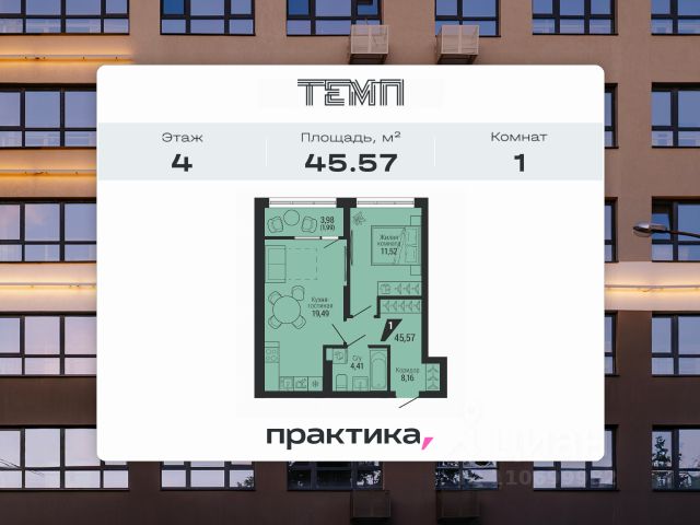 Жилой квартал "К100" на Космонавтов, 100 будет состоять из трех монолитно-кирпичных домов, объединенных общим двором. Застройщик компания "Практика". Планировки начинаются от 44,8 м² и доходят до 159,5 м². На каждом этаже располагается от восьми квартир классического и евроформата от двух до пяти комнат. Застройщик предлагает два вида отделки: white box и чистовую. Есть возможность перепланировки. Двор с ландшафтным озеленением разделен на три зоны. Для детей игровые площадки с меловыми досками и уличными шахматами, для взрослых лаунж-зона с креслами и столиками для отдыха, для спортсменов воркаут-площадка. На первом этаже лобби-клуб с игровыми комнатами, залом для йоги, коворкингом и мини-кинотеатром, колясочные и велосипедные помещения. Для автомобилистов предусмотрены гостевые места и подземный паркинг с доступом на лифте. На всей территории жилого комплекса установят видеонаблюдение. В доме будет работать консьерж-сервис в режиме 24/7. Дополнительные услуги включают клининг, выгул домашних животных, доставку еды из ресторанов и вызов такси. Также предусмотрена система "Умный дом". Рядом с жилым комплексом находятся сосновый бор, школы, детские сады, медицинские учреждения, торговые центры и супермаркеты, остановки общественного транспорта и станция метро. В шаговой доступности от дома откроется новый корпус уникальной гимназии "Арт-Этюд" — многопрофильного центра общего и художественного образования для детей от 3 до 18 лет. Строительство первой очереди жилого квартала "К100" на Космонавтов, 100 завершится в четвертом квартале 2026 года. Продается 1-комнатная квартира от застройщика рядом с метро Проспект Космонавтов.