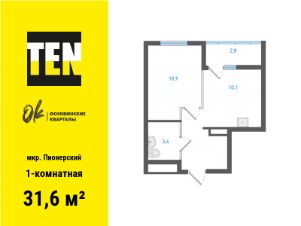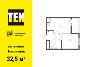 Однокомнатная квартира с предчистовой отделкой в ЖК "Квартал Траектория" на 6 этаже. Общая площадь: 36.5 кв.м., жилая: 9 кв.м., площадь просторной кухни-столовой: 14.4 кв.м. Все окна выходят на одну сторону. В квартире один балкон, один совмещенный санузел. Высота потолков 2.82 м.