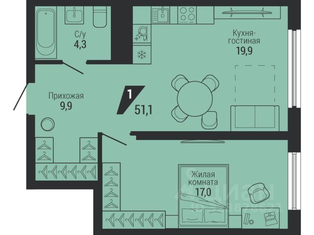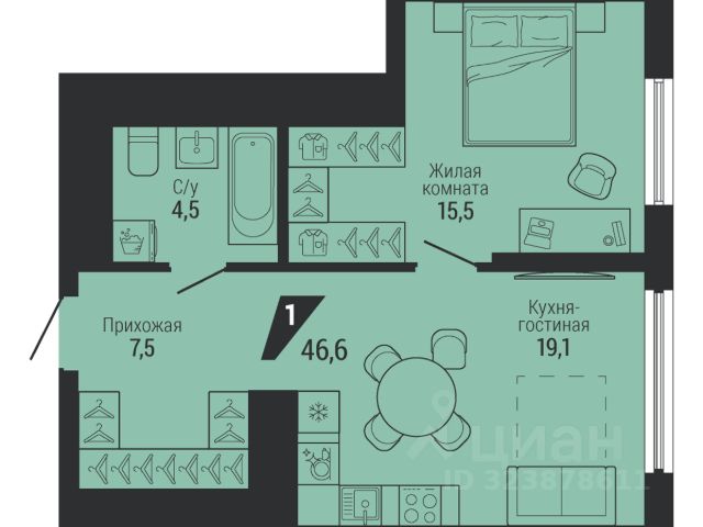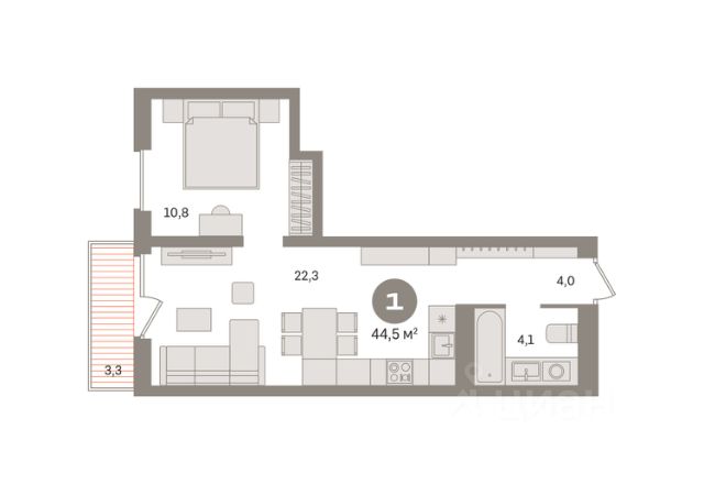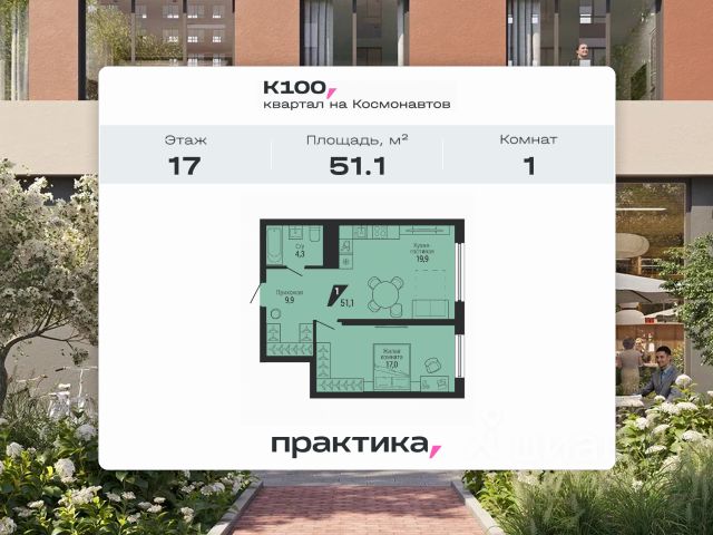 Жилой квартал "К100" на Космонавтов, 100 будет состоять из трех монолитно-кирпичных домов, объединенных общим двором. Застройщик компания "Практика". Планировки начинаются от 44,8 м² и доходят до 159,5 м². На каждом этаже располагается от восьми квартир классического и евроформата от двух до пяти комнат. Застройщик предлагает два вида отделки: white box и чистовую. Есть возможность перепланировки. Двор с ландшафтным озеленением разделен на три зоны. Для детей игровые площадки с меловыми досками и уличными шахматами, для взрослых лаунж-зона с креслами и столиками для отдыха, для спортсменов воркаут-площадка. На первом этаже лобби-клуб с игровыми комнатами, залом для йоги, коворкингом и мини-кинотеатром, колясочные и велосипедные помещения. Для автомобилистов предусмотрены гостевые места и подземный паркинг с доступом на лифте. На всей территории жилого комплекса установят видеонаблюдение. В доме будет работать консьерж-сервис в режиме 24/7. Дополнительные услуги включают клининг, выгул домашних животных, доставку еды из ресторанов и вызов такси. Также предусмотрена система "Умный дом". Рядом с жилым комплексом находятся сосновый бор, школы, детские сады, медицинские учреждения, торговые центры и супермаркеты, остановки общественного транспорта и станция метро. В шаговой доступности от дома откроется новый корпус уникальной гимназии "Арт-Этюд" — многопрофильного центра общего и художественного образования для детей от 3 до 18 лет. Строительство первой очереди жилого квартала "К100" на Космонавтов, 100 завершится в четвертом квартале 2026 года. 1-комнатная квартира в новостройке с отделкой в микрорайоне Эльмаш в городе Екатеринбург.