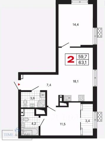 ID объекта в нашей базе: 8420 1-комнатная квартира в новостройке с отделкой в микрорайоне Парковый в городе Екатеринбург.