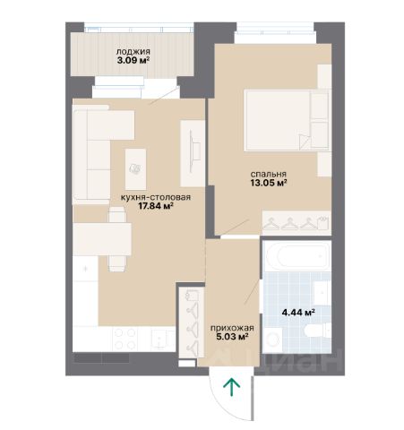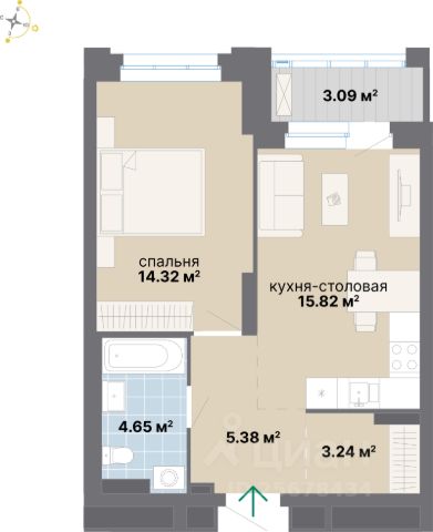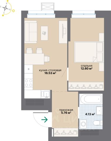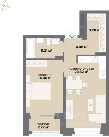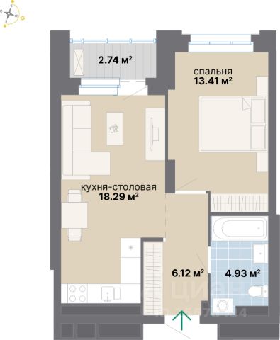 Монолитно-кирпичный дом 2022 года постройки. Класс ЖК: комфорт+. Квартира с предчистовой отделкой, общей площадью 48,6 м2 (без учета балкона и лоджии 46,5 м2). Просторная кухня-гостиная 22,5 м2 и отдельная спальня 12,0 м2, с/у-раздельный, потолки 2,7 м.