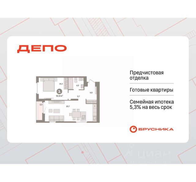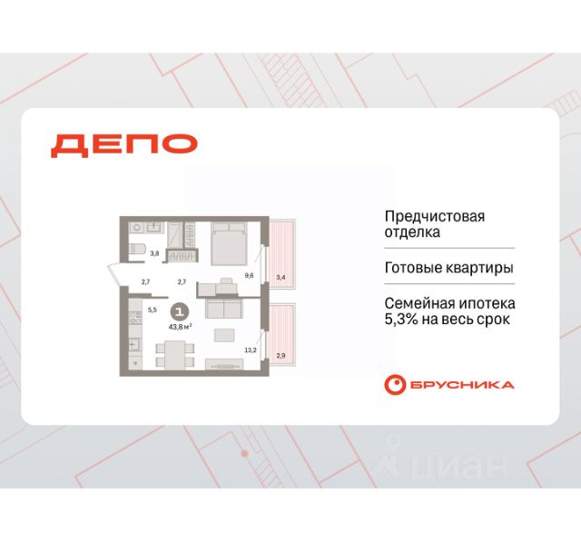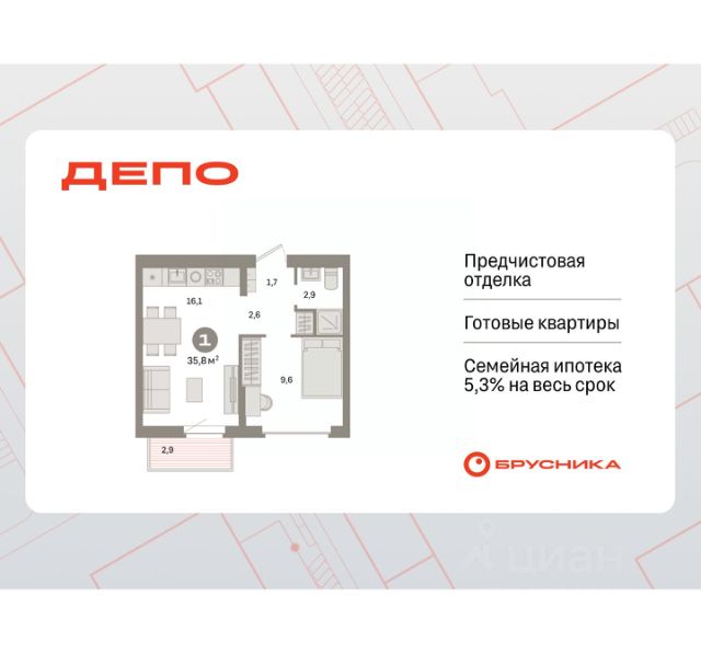 Продается 1-комн. квартира от застройщика с предчистовой отделкой в ЖК "Квартал Траектория" на 5 этаже. Общая площадь: 35.7 кв.м., жилая: 9.6 кв.м., площадь просторной кухни-столовой: 16.2 кв.м. Все окна выходят на одну сторону. В квартире один балкон, один совмещенный санузел. Высота потолков 2.82 м. Дом монолитный, многоподъездный, переменной этажности, от 7 до 25 этажей. Квартира находится в 8-й секции высотой 7 этажей в корпусе 1-1. На этаже 3 квартиры. В подъезде 1 грузовой лифт. Начало строительства - 4 квартал 2025 года. Окончание строительства - 4 квартал 2027 года. Оформление сделки по договору долевого участия. Квартира с кухней-гостиной и одной спальней в квартале "Траектория". Особенности планировки: балкон, вид во двор, предчистовая отделка. квартиры в нашей базе: МНВ01-Ж8.5.1. Квартал "Траектория" строится в границах улиц Билимбаевской, Расточной, Монтажников и Маневровой Раньше здесь находился оборонный завод 5-ЦАРЗ, основанный в 1945 году. После войны он ремонтировал военную и грузовую технику — от "Виллисов" и "Студебекеров" до советских ЗИС-5 и ГАЗ-67. Сортировка — район с развитой инфраструктурой, обжитыми жилыми кварталами разных эпох и большим количеством парков. До центра Екатеринбурга — 20 минут на машине. Туда же можно отправиться на автобусе: ближайшая остановка общественного транспорта — в 4 минутах от "Траектории". Рядом с "Траекторией" расположены магазины, торговый центр, детские сады, школы, поликлиники и полезные сервисы, а также другой проект Брусники — квартал "Депо". Если хочется развлечений, можно отправиться в ТРЦ "Карнавал" и парк с аттракционами "Таганская слобода" — дорога туда займёт не более 10 минут на машине. Квартал "Траектория" — первый этап комплексного развития территории, которую раньше занимали производственные здания. На месте бывших цехов Брусника создаст дружелюбную среду и комфортное пешеходное пространство для всего района. Для озеленения квартала мы подобрали больше 60 видов растений: ольху, липу, клён, иву, грушу, вишню, сирень, барбарис, гортензию, смородину, ирис, декоративные травы. Они цветут в разное время года и постоянно меняют настроение двора. В "Траектории" мы предусмотрели несколько общественных пространств, открытых для всех горожан: встречающий сквер, лесопарк у храма и событийный сквер между домами. Когда захочется тишины и уединения, можно устроить прогулку во внутренних дворах: в них нет машин и посторонних, зато много зелени, света и мест для отдыха. Каждый двор в квартале "Траектория" — продолжение квартиры, только под открытым небом. Здесь можно прогуляться босиком по траве, устроить утреннюю йогу, почитать книгу в гамаке или отправить детей поиграть, не переживая за их безопасность. Мы закроем дворы от машин, чтобы создать безопасную среду для отдыха. Применим натуральные материалы в отделке малых архитектурных форм — дерево, камень, металл без лишней обработки. Внутри каждого двора — детские площадки, перголы с тенистыми зонами, мягкие газоны и Продается 1-комнатная квартира в новостройке с отделкой в районе Железнодорожный в городе Екатеринбург.