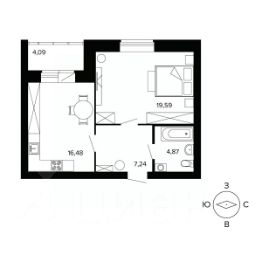 С/у совмещенный, площадь позволяет разместить ванную, туалет с раковиной, а также стиральную машинку.