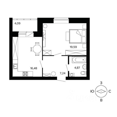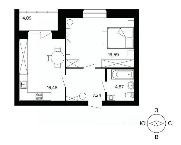 Просторная жилая зона позволяет сделать планировку на свой вкус с выходом на лоджию.