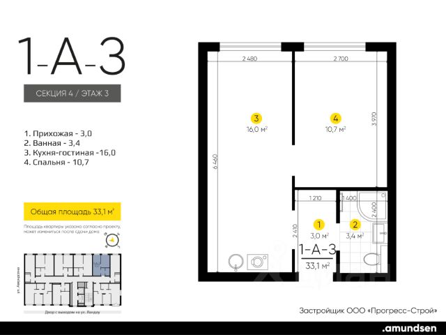 Жилой квартал "Amundsen" - для себя, для семьи, для жизни и развития. Авторская концепция проекта эффектно выделяется в 3 особенностях комплекса: фасады, двор и места общего пользования. AMUNDSEN ПРОЕКТ С ХАРАКТЕРОМ ВЕЛИКОГО ПЕРВООТКРЫВАТЕЛЯ. 4 СЕЗОНА: Двор-трансформер позволяет активно использовать все площадки круглый год. В холодное время года санки, коньки и снежные бои за главную башню. В теплое время источник наполняет двор водой и прохладой. Работают площадки для активных игр и спокойного отдыха. 6 ДЕТСКИХ ПЛОЩАДОК: Мы разделили площадки по возрастным группам для малышей и детей постарше. Качели, аттракционы, водные и активные игры созданы, чтобы познавать мир. 5 ПЛОЩАДОК ДЛЯ СПОКОЙНОГО ОТДЫХА: За счет игры с ландшафтом мы создали приватные зоны, украсили пространство разнотравьем, оживили двор источником. Шум воды, лежаки, беседки, парк места, где ты почувствуешь течение жизни. AMUNDSEN ИДЕАЛЬНОЕ МЕСТО ДЛЯ ЖИЗНИ И РАЗВИТИЯ. - Жилой квартал расположен в экологически чистом районе в окружении двух лесных массивов. - Новые современные школы и детские сады. Спортивный кластер для занятий. - Главный холл пространство для всех. Для самых маленьких игры, для взрослых кафе с ярким дизайном, тихий коворкинг, места для отдыха и светлый, просторный атриум. - Детские площадки "будущего" с оригинальным подходом к созданию игровой среды. - Безопасная территория. Круглосуточная охрана, видеонаблюдение 24/7, электронная система доступа, двор без машин. Застройщик ООО СЗ "Прогресс-Строй", проектная декларация на сайте наш.дом.рф