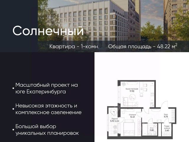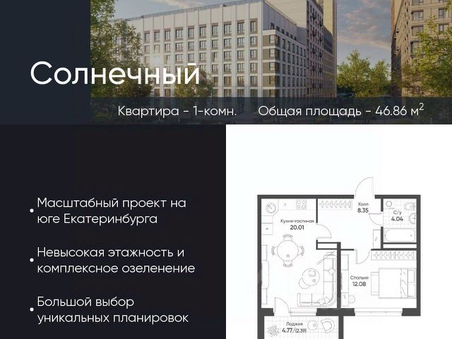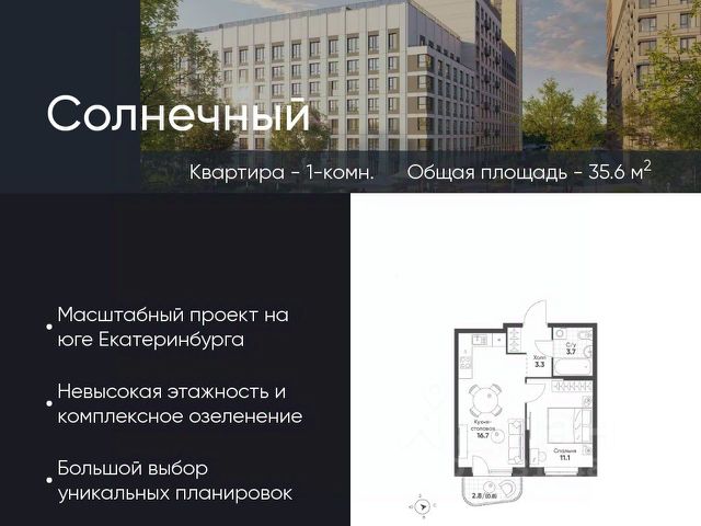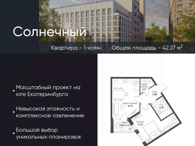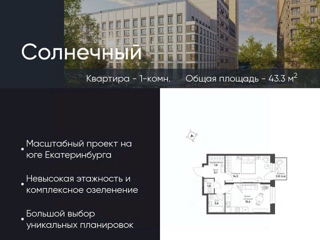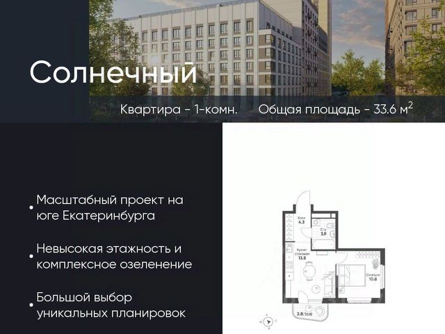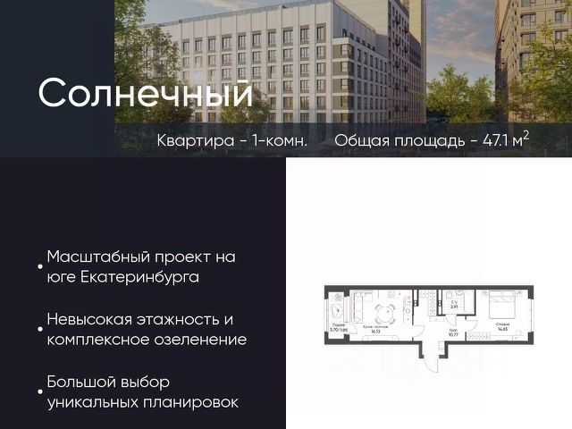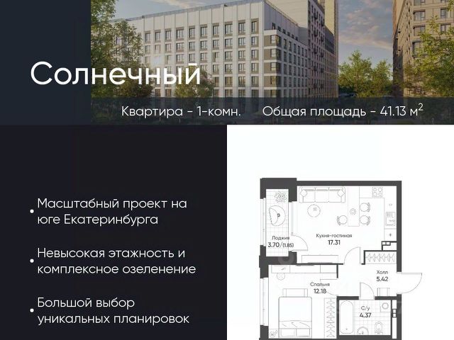 Современное жилье в тихом, зеленом районе с развитой инфраструктурой и отличной транспортной доступностью. О районе: жизнь в гармонии с городом и природой Экология и тишина: Микрорайон "Солнечный" окружен зелеными зонами. Вы будете наслаждаться свежим воздухом и спокойной атмосферой, вдали от шума центральных улиц. Инфраструктура "под рукой": В шаговой доступности все необходимое для комфортной жизни: детские сады, школы, поликлиники, аптеки, супермаркеты и торговые центры. Отличная транспортная доступность: Удобный выезд на основные магистрали города, что позволяет быстро добраться до любой точки Екатеринбурга. О квартире: ваш уголок для счастливой жизни Современная планировка без лишних затрат на перепланировку. Просторные комнаты для комфортного проживания семьи с детьми. Комфортная площадь, позволяющая создать уютное и функциональное пространство. Кому подойдет эта квартира? Молодым семьям: для старта в собственном современном жилье в спальном районе с детской инфраструктурой. Инвесторам: район активно развивается, что сулит потенциал роста стоимости недвижимости. Всем, кто ценит спокойствие: идеальный баланс между городской жизнью и загородной тишиной. Финансовые условия: Привлекательная цена. Индивидуальные условия рассрочки (обсуждаются персонально). Не упустите шанс поселиться в новом доме в одном из лучших районов Екатеринбурга! Звоните прямо сейчас, чтобы записаться на просмотр и узнать все детали!