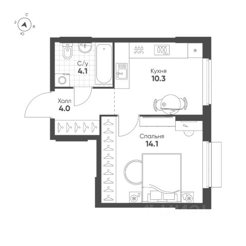 * Удобная планировка: кухня-гостиная 15,3 кв.м и комната 10,2 кв.м.