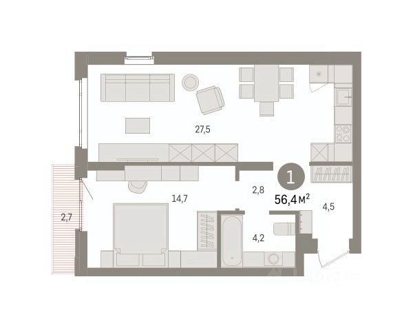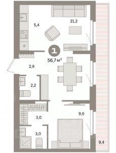 Просторная 1-комн. квартира с предчистовой отделкой в ЖК "Квартал Траектория" на 4 этаже. Общая площадь: 43.7 кв.м., жилая: 15.1 кв.м., площадь просторной кухни-столовой: 16.4 кв.м. Все окна выходят на одну сторону. В квартире один балкон, один совмещенный санузел. Высота потолков 2.82 м. Дом монолитный, многоподъездный, переменной этажности, от 7 до 25 этажей. Квартира находится в 7-й секции высотой 7 этажей в корпусе 1-1. На этаже 8 квартир. В подъезде 1 грузовой лифт. Начало строительства - 4 квартал 2025 года. Окончание строительства - 4 квартал 2027 года. Оформление сделки по договору долевого участия. Квартира с кухней-гостиной и одной спальней в квартале "Траектория". Особенности планировки: стартовая цена, вид во двор, предчистовая отделка, балкон. квартиры в нашей базе: МНВ01-Ж7.4.1. Квартал "Траектория" строится в границах улиц Билимбаевской, Расточной, Монтажников и Маневровой Раньше здесь находился оборонный завод 5-ЦАРЗ, основанный в 1945 году. После войны он ремонтировал военную и грузовую технику — от "Виллисов" и "Студебекеров" до советских ЗИС-5 и ГАЗ-67. Сортировка — район с развитой инфраструктурой, обжитыми жилыми кварталами разных эпох и большим количеством парков. До центра Екатеринбурга — 20 минут на машине. Туда же можно отправиться на автобусе: ближайшая остановка общественного транспорта — в 4 минутах от "Траектории". Рядом с "Траекторией" расположены магазины, торговый центр, детские сады, школы, поликлиники и полезные сервисы, а также другой проект Брусники — квартал "Депо". Если хочется развлечений, можно отправиться в ТРЦ "Карнавал" и парк с аттракционами "Таганская слобода" — дорога туда займёт не более 10 минут на машине. Квартал "Траектория" — первый этап комплексного развития территории, которую раньше занимали производственные здания. На месте бывших цехов Брусника создаст дружелюбную среду и комфортное пешеходное пространство для всего района. Для озеленения квартала мы подобрали больше 60 видов растений: ольху, липу, клён, иву, грушу, вишню, сирень, барбарис, гортензию, смородину, ирис, декоративные травы. Они цветут в разное время года и постоянно меняют настроение двора. В "Траектории" мы предусмотрели несколько общественных пространств, открытых для всех горожан: встречающий сквер, лесопарк у храма и событийный сквер между домами. Когда захочется тишины и уединения, можно устроить прогулку во внутренних дворах: в них нет машин и посторонних, зато много зелени, света и мест для отдыха. Каждый двор в квартале "Траектория" — продолжение квартиры, только под открытым небом. Здесь можно прогуляться босиком по траве, устроить утреннюю йогу, почитать книгу в гамаке или отправить детей поиграть, не переживая за их безопасность. Мы закроем дворы от машин, чтобы создать безопасную среду для отдыха. Применим натуральные материалы в отделке малых архитектурных форм — дерево, камень, металл без лишней обработки. Внутри каждого двора — детские площадки, перголы с тенистыми зонами, мягкие газоны Продается 1-комнатная квартира в новостройке в районе Железнодорожный в городе Екатеринбург.