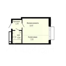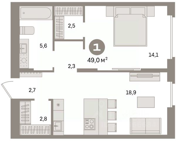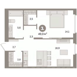 Квартира с кухней-гостиной и одной спальней в квартале "Траектория". Особенности планировки: балкон, вид во двор, предчистовая отделка.