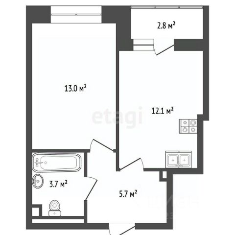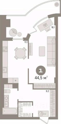 Общая площадь помещений с учетом лоджий 38,1 кв.метров.