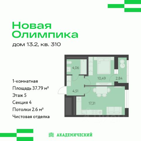 Торопитесь оформить бронирование по акционной цене! Период предложения ограничен! Стоимость квартиры указана со скидкой, ваша экономия составит 420,000 RUB. Звоните, мы вам все подробно расскажем! Квартира с кухней-гостиной и одной спальней в Бруснике в Академическом. Особенности планировки: предчистовая отделка, балкон. квартиры в нашей базе: АКД05-Ж8.2.5. Квартал "Брусника в Академическом" расположен в границах улиц Ландау — Новая. Сегодня Академический — молодой, стремительно развивающийся район, обеспеченный всей необходимой инфраструктурой. С центром его связывают две магистральные улицы — Вильгельма де Геннина и Амундсена. Последняя в перспективе соединится с ЕКАДом, что позволит жителям быстрее выезжать из города. Согласно утвержденному проекту планировки территории в пешеходной доступности от квартала Брусники появятся две школы, рассчитанные на 1700 мест, и шесть детских садов. Рядом со строящимися домами расположены две крупные зелёные зоны — Юго-Западный лесопарк и Преображенский парк. В школах раиона совместно с учеными УрО РАН будет реализован проект "Малая академия наук", предпогагающий регулярные экскурсии в отраслевые институты и лаборатории, участие в научных конференциях и мастер-классах. Также в Академическом уже построены, теннисная академия и дворец дзюдо, крупные ТРЦ "Краснолесье" и ТРЦ "Академический", гипермаркет "Лента", в планах — организация ИT-кластера и новых филиалов НИИ. Камерные дворы квартала закрыты от машин. По нашим стандартам 70% их территории покрывает зелень. Деревья, кустарники и травы подобраны таким образом, чтобы в каждый сезон двор оставался красивым и имел свой цвет. Каждый двор разделён на зоны. В одной расположены детские площадки, в другой — места для спорта и тихого отдыха взрослых. Особенность ландшафта дворов — дождевые сады, снижающие нагрузку на ливневую канализацию. Они впитывают сток с крыш и тротуаров, фильтруют его в специально подобранном субстрате и отправляют в пруд. #2SOgw0