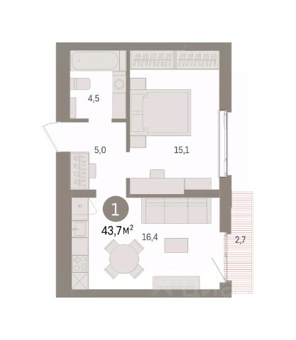 1-комн. квартира с предчистовой отделкой в ЖК "Квартал Траектория" на 4 этаже. Общая площадь: 44.9 кв.м., жилая: 14.5 кв.м., площадь просторной кухни-столовой: 15.6 кв.м. Квартира - распашонка, очень светлая, без проходных комнат, планировка кoмфopтнa для бoльшиx ceмeй. В квартире один балкон, один совмещенный санузел. Высота потолков 2.82 м. Дом монолитный, многоподъездный, переменной этажности, от 7 до 16 этажей. Квартира находится во 2-й секции высотой 7 этажей в корпусе 1-2. На этаже 8 квартир. В подъезде 1 грузовой лифт. Начало строительства - 4 квартал 2025 года. Окончание строительства - 4 квартал 2027 года. Оформление сделки по договору долевого участия. Квартира с кухней-гостиной и одной спальней в квартале "Траектория". Особенности планировки: вид во двор, лоджия, предчистовая отделка. квартиры в нашей базе: МНВ01-Ж10.4.9. Квартал "Траектория" строится в границах улиц Билимбаевской, Расточной, Монтажников и Маневровой Раньше здесь находился оборонный завод 5-ЦАРЗ, основанный в 1945 году. После войны он ремонтировал военную и грузовую технику — от "Виллисов" и "Студебекеров" до советских ЗИС-5 и ГАЗ-67. Сортировка — район с развитой инфраструктурой, обжитыми жилыми кварталами разных эпох и большим количеством парков. До центра Екатеринбурга — 20 минут на машине. Туда же можно отправиться на автобусе: ближайшая остановка общественного транспорта — в 4 минутах от "Траектории". Рядом с "Траекторией" расположены магазины, торговый центр, детские сады, школы, поликлиники и полезные сервисы, а также другой проект Брусники — квартал "Депо". Если хочется развлечений, можно отправиться в ТРЦ "Карнавал" и парк с аттракционами "Таганская слобода" — дорога туда займёт не более 10 минут на машине. Квартал "Траектория" — первый этап комплексного развития территории, которую раньше занимали производственные здания. На месте бывших цехов Брусника создаст дружелюбную среду и комфортное пешеходное пространство для всего района. Для озеленения квартала мы подобрали больше 60 видов растений: ольху, липу, клён, иву, грушу, вишню, сирень, барбарис, гортензию, смородину, ирис, декоративные травы. Они цветут в разное время года и постоянно меняют настроение двора. В "Траектории" мы предусмотрели несколько общественных пространств, открытых для всех горожан: встречающий сквер, лесопарк у храма и событийный сквер между домами. Когда захочется тишины и уединения, можно устроить прогулку во внутренних дворах: в них нет машин и посторонних, зато много зелени, света и мест для отдыха. Каждый двор в квартале "Траектория" — продолжение квартиры, только под открытым небом. Здесь можно прогуляться босиком по траве, устроить утреннюю йогу, почитать книгу в гамаке или отправить детей поиграть, не переживая за их безопасность. Мы закроем дворы от машин, чтобы создать безопасную среду для отдыха. Применим натуральные материалы в отделке малых архитектурных форм — дерево, камень, металл без лишней обработки. Внутри каждого двора — детские площадки, п Купить 1-комнатную квартиру первичка в районе Железнодорожный в городе Екатеринбург.