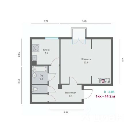-планировка: удобная кухня-гостиная, в коридоре большая изолированная зона для хранения вещей, просторный совмещенный санузел, лоджия