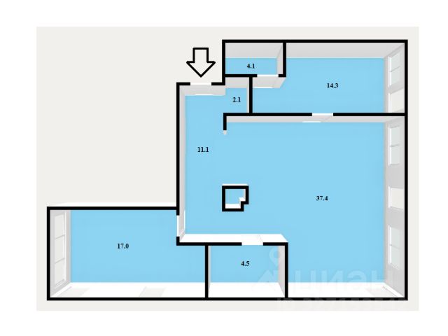 • ✅ Объект наибольшей площади: 34 м²