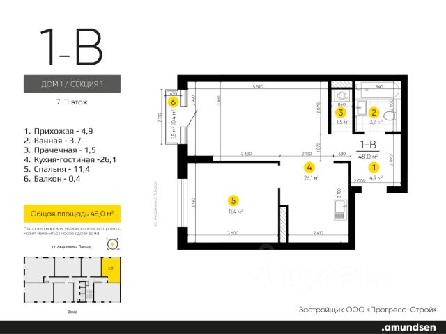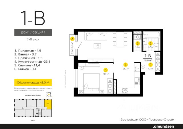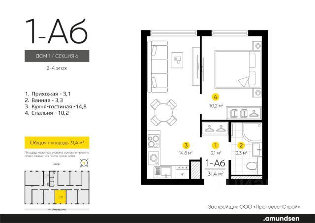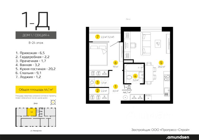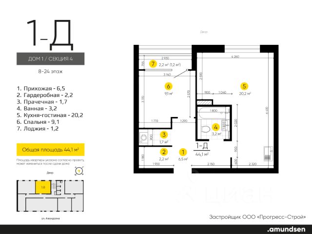 Жилой квартал "Amundsen" - для себя, для семьи, для жизни и развития. Авторская концепция проекта эффектно выделяется в 3 особенностях комплекса: фасады, двор и места общего пользования. AMUNDSEN ПРОЕКТ С ХАРАКТЕРОМ ВЕЛИКОГО ПЕРВООТКРЫВАТЕЛЯ. 4 СЕЗОНА: Двор-трансформер позволяет активно использовать все площадки круглый год. В холодное время года санки, коньки и снежные бои за главную башню. В теплое время источник наполняет двор водой и прохладой. Работают площадки для активных игр и спокойного отдыха. 6 ДЕТСКИХ ПЛОЩАДОК: Мы разделили площадки по возрастным группам для малышей и детей постарше. Качели, аттракционы, водные и активные игры созданы, чтобы познавать мир. 5 ПЛОЩАДОК ДЛЯ СПОКОЙНОГО ОТДЫХА: За счет игры с ландшафтом мы создали приватные зоны, украсили пространство разнотравьем, оживили двор источником. Шум воды, лежаки, беседки, парк места, где ты почувствуешь течение жизни. AMUNDSEN ИДЕАЛЬНОЕ МЕСТО ДЛЯ ЖИЗНИ И РАЗВИТИЯ. - Жилой квартал расположен в экологически чистом районе в окружении двух лесных массивов. - Новые современные школы и детские сады. Спортивный кластер для занятий. - Главный холл пространство для всех. Для самых маленьких игры, для взрослых кафе с ярким дизайном, тихий коворкинг, места для отдыха и светлый, просторный атриум. - Детские площадки "будущего" с оригинальным подходом к созданию игровой среды. - Безопасная территория. Круглосуточная охрана, видеонаблюдение 24/7, электронная система доступа, двор без машин. Застройщик ООО СЗ "Прогресс-Строй", проектная декларация на сайте наш.дом.рф