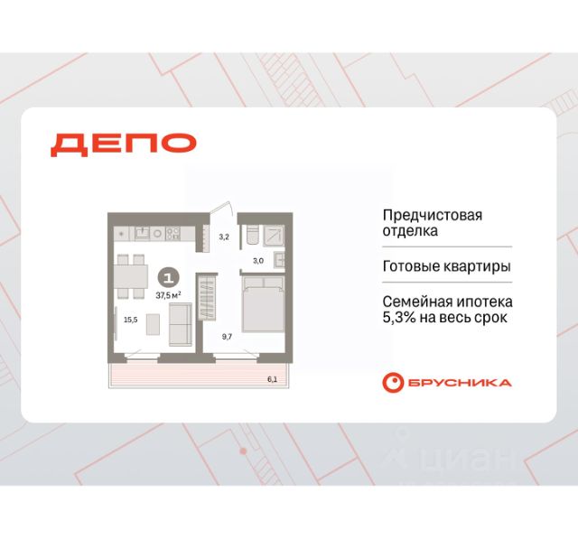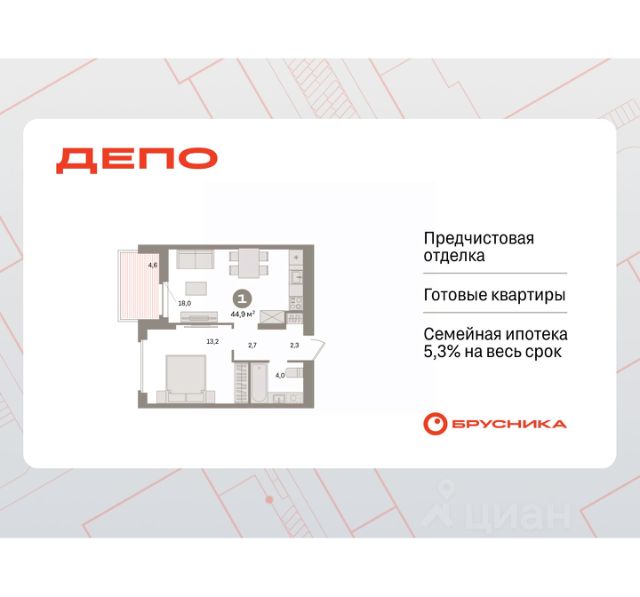 Квартира с кухней-гостиной и одной спальней в квартале "Депо". Особенности планировки: предчистовая отделка, терраса на крыше. квартиры в нашей базе: ДЕП04-Ж7.8.3. Квартал "Депо" расположен в активно развивающейся части Сортировки, на месте, где раньше был завод "Электротранс". Преимущества Сортировки — развитая инфраструктура. В пешей доступности — супермаркеты, остановки городского транспорта, поликлиники, детские сады, школы, гимназии, торговые центры, автоцентры, рынок с большим и доступным по стоимости выбором товаров, парк РЖД и парк с аттракционами Таганская Слобода. Квартал "Депо" расположен в границах улиц Пехотинцев — Таватуйская — Сортировочная — Новая (проектируется). Благоустройство квартала основано на трёх принципах. Первый — особое внимание к воде. Архитекторы Брусники создадут внутри застройки систему дождевых садов, которые будут фильтровать сток (в том числе с крыш зданий) и снижать нагрузку на ливневую канализацию . Второй принцип — разнообразие. Мы высадим на улицах ивы, липы, яблони разных сортов, спиреи, лапчатку и дерен, а во дворах — березы, липы, черёмухи, пузыреплодник, кизильник и манчжурский орех, который в Екатеринбурге почти не представлен. Третий принцип — зонирование. Центральный бульвар мы насытим площадками для игр детей и спокойного отдыха взрослых, на площади перед детским садом расположим окруженные деревьями плэйхабы, летние веранды кафе, открытое пространство с запоминающимся артом. #ZSctC6