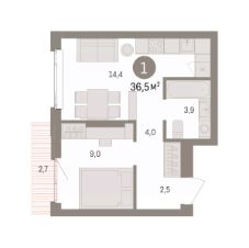 Просторная 1-комн. квартира с предчистовой отделкой в ЖК "Квартал Траектория" на 3 этаже. Общая площадь: 36.5 кв.м., жилая: 9 кв.м., площадь просторной кухни-столовой: 14.4 кв.м. Все окна выходят на одну сторону. В квартире один балкон, один совмещенный санузел. Высота потолков 2.82 м.