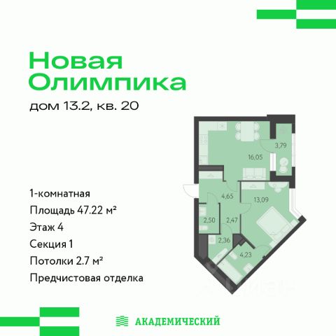 Проект от основателя и главного застройщика Академического района. Расположение и инфраструктура: Квартал "Новая Олимпика" включает десять блоков домов, два детских сада в периметре улиц А. Парина А. Ландау А. Вавилова Матвеева. Сроки строительства квартала: 3 квартал 2024 3 квартал 2030. В числе особых преимуществ уникальная локация: напротив Преображенского парка, рядом с Дворцом Дзюдо и Академией тенниса. Развитая транспортная развязка, включающая трамвайную линию. На территории квартала планируется: видеонаблюдение 24/7, подземный паркинг с доступом на лифте, кладовые, велодорожки, многоуровневое озеленение, workout зоны для уличного фитнеса, детские игровые комплексы. На первых этажах будут располагаться торговые галереи.