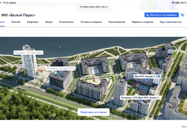 Жизнь на берегу пруда, наслаждение каждым моментом, спокойные уютные вечера, детский смех на площадке, пробежки по набережной. И это лишь малая часть того, что возможно в жилом квартале "Белый парус". Квартал находится в историческом центре Верх-Исетского района — 15 минут на машине до центра, 3 минуты до набережной, 14 минут до ТЦ "Мега". На территории "Белого паруса" будет все самое необходимое — ресторан, кофейня, пункты выдачи. В 3 очереди квартала есть подземный паркинг, спуститься в который можно на современном, скоростном лифте. Предусмотрен бесконтактный въезд, а на территории установлен усилитель сигнала мобильной связи. Для владельцев электромобилей предусмотрены зарядные станции с отдельным счетчиком для каждого места. Архитекторы объединили дворы третьей и четвертой очередей. На большом едином пространстве установлены игровые комплексы, часть из которых спроектирована специально для этого двора. Ландшафт продуман до мелочей: разнообразные деревья и кустарники будут радовать глаз в любое время года. В ненастную погоду вашим детям совсем не обязательно оставаться дома. Можно провести время с пользой и найти новых друзей в детской игровой комнате, расположенной на первой этаже дома. Здесь тепло, по-домашнему уютно и всегда весело. А для подростков есть места для зарядки гаджетов. На крыше третьей секции расположена отрытая терраса площадка для знакомства и общения соседей. Здесь комфортно отдыхать, любоваться восходами и закатами или просто наблюдать за парусниками, скользящими по водной глади. На первом этаже предусмотрены места для хранения крупных предметов: колясок, самокатов, велосипедов. Попасть в них могут только жители по смарт-ключу. В третьей очереди представлены планировки от 31 до 98 кв.м. В наличии форматы от эргономичных студий до просторных трехкомнатных с гардеробными и мастер-спальнями. Квартиры передаются с отделкой "под чистовую". Высота потолков 2,87 м. Всё уже готово к ремонту: выведена разводка электричества, выполнена стяжка пола, стены и потолок выровнены. На окнах установлены замки с ограничителями для безопасности детей. Есть клапаны инфильтрации воздуха. Установлены радиаторы с возможностью регулировки температуры. В феврале 2025 года ЖК "Белый Парус" получил диплом и статус "Умной новостройки" от Единого реестра застройщиков РФ. Срок сдачи дома II квартал 2026 г.