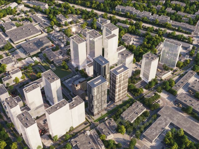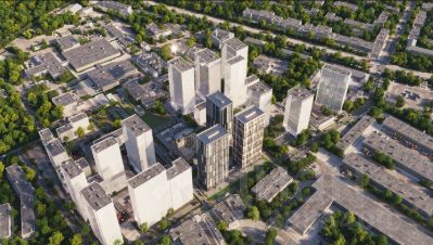 Квартал состоит из четырех 27-этажных домов. В домах — уютные студии, однокомнатные, двухкомнатные, семейные трехкомнатные квартиры. А для ценителей редких форматов квартиры с террасами. Парадный вестибюль с камином и кафе, двор с лаунж-зонами, фонтаном, сенсорным садом, детскими и спортивными площадками внутри.