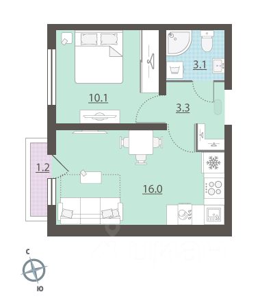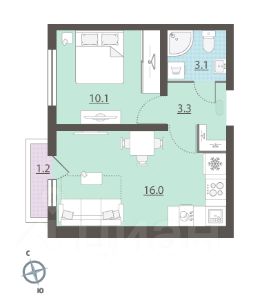 Новая кваpтиpa с уникальным расположением на этаже, современной планировкой формата студии и остекленной лоджией.