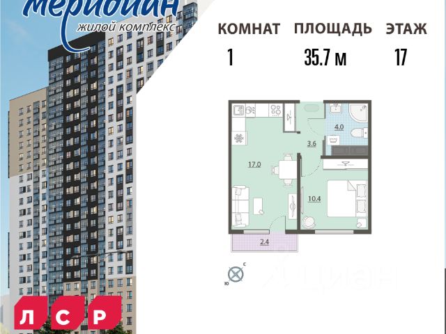 Продается 1-комн. квартира с европланировкой, площадью 35 м2 в монолитно-кирпичной новостройке в 11 мин. транспортом от м.Чкаловская. Возможен вариант покупки с использованием ипотечных средств, есть рассрочка. Жилая площадь 10.4 м2, кухня 17 м2, чистовая отделка. Раздельных санузлов - нет, балконов - нет, лоджий - нет. Квартира располагается на 17 этаже 24-этажного дома в ЖК Меридиан. Застройщик - Специализированный застройщик ЛСР. Недвижимость-Урал, сдача дома - I квартал 2026 года, высота потолков 2.5 м. Парковка автомобилей - наземная. Инфраструктура: школа, детский сад, детские площадки, спортивные площадки, места для отдыха, супермаркет. "Меридиан" - уютный жилой комплекс от "Группы ЛСР", который расположен в активно развивающейся части Екатеринбурга - Академическом районе. За счет близости лесного массива и реки Патрушихи в локации сложилась благоприятная экологическая обстановка. В состав жилого квартала "Меридиан" входит шестнадцать панельных домов высотой от 8 до 25 этажей с разноцветными фасадами, а также здание образовательного центра. Новостройка расположена в юго-западной части Екатеринбурга, недалеко от ЕКАД, на границе микрорайонов Академический и Широкая речка, рядом с улицей Суходольская, по соседству с малоэтажным кварталом "Мичуринский". Позвоните и узнайте условия покупки прямо сейчас!