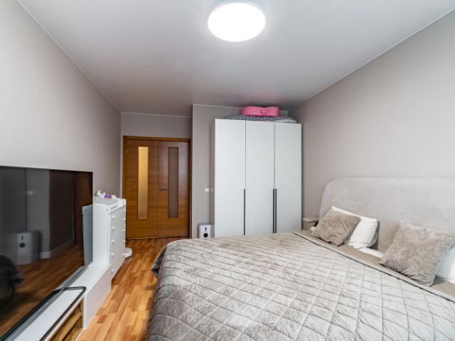 -отличная планировка: кухня-гостиная 19.4 кв.м.(легко зонировать) , спальная комната 16.5кв.м. , балкон 4.4кв.м,