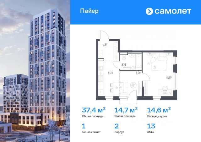 Строим кварталы для жизни с заботой о будущем. Предлагается 1-комнатная квартира комфорт-класса 32,82 кв.м в корпусе 2 на 13 этаже, в ЖК "Пайер" Квартира с предчистовой отделкой. Доступность дополнительных опций уточняйте у застройщика. Приобрести квартиру возможно по специальным акциям от застройщика, с текущими условиями акций можно ознакомиться в блоке "Акций". Цена динамическая и может отличаться, уточняйте актуальность у застройщика. В жилом квартале "Пайер" мы сохранили уютную и беззаботную атмосферу. До центра Екатеринбурга — 15 минут на авто. Всего 20 минут прогулки - до большого парка на берегу реки Исеть и Ольховского пруда. Рядом работают детские сады, школа, магазины, пункты выдачи, аптеки и кафе. В приватном зеленом дворе-парке есть спортивная и игровая зона. Лаконичные фасады с открытыми террасами выглядят выразительно. Квартиры с предчистовой отделкой.