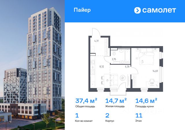 Строим кварталы для жизни с заботой о будущем. Предлагается 1-комнатная квартира комфорт-класса 37,37 кв.м в корпусе 2 на 11 этаже, в ЖК "Пайер" Квартира с предчистовой отделкой. Доступность дополнительных опций уточняйте у застройщика. Приобрести квартиру возможно по специальным акциям от застройщика, с текущими условиями акций можно ознакомиться в блоке "Акций". Цена динамическая и может отличаться, уточняйте актуальность у застройщика. В жилом квартале "Пайер" мы сохранили уютную и беззаботную атмосферу. До центра Екатеринбурга — 15 минут на авто. Всего 20 минут прогулки - до большого парка на берегу реки Исеть и Ольховского пруда. Рядом работают детские сады, школа, магазины, пункты выдачи, аптеки и кафе. В приватном зеленом дворе-парке есть спортивная и игровая зона. Лаконичные фасады с открытыми террасами выглядят выразительно. Квартиры с предчистовой отделкой.
