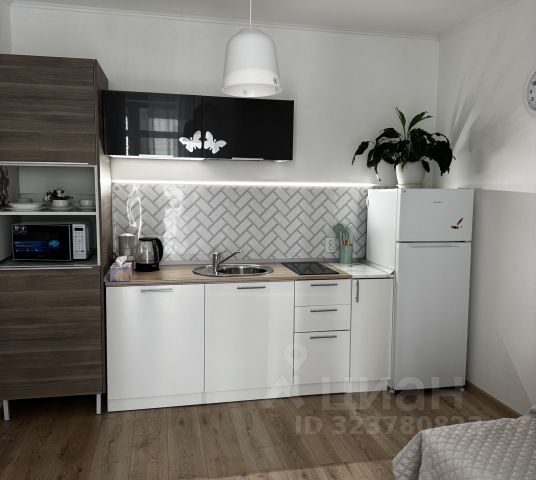 Покупателю оставляем шкаф-купе для одежды в прихожей, качественный глянцевый встроенный кухонный гарнитур со встроенной техникой- варочная поверхность и духовой шкаф (немецкого производства) и встроенная вытяжка.