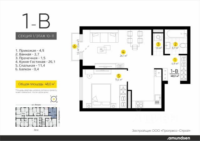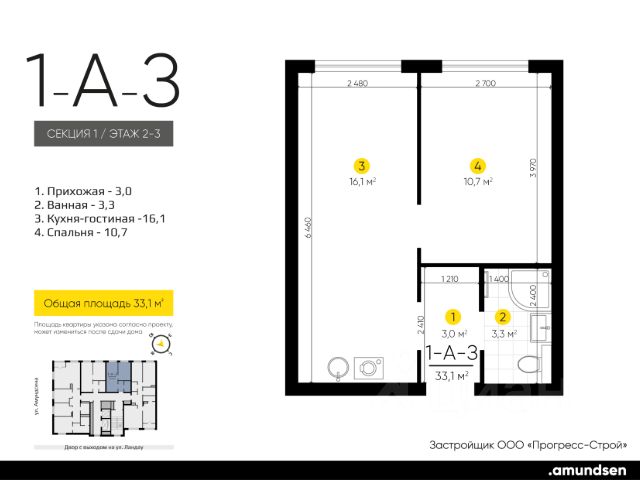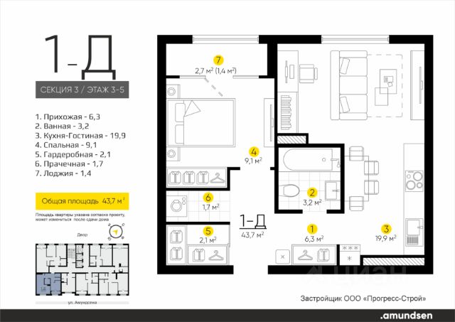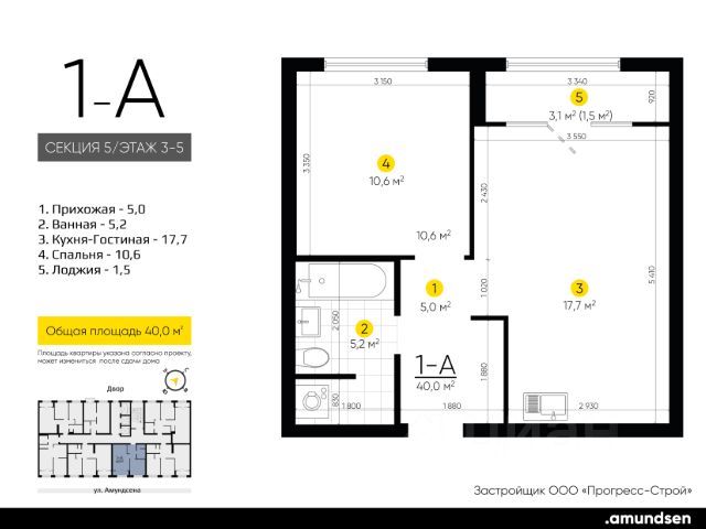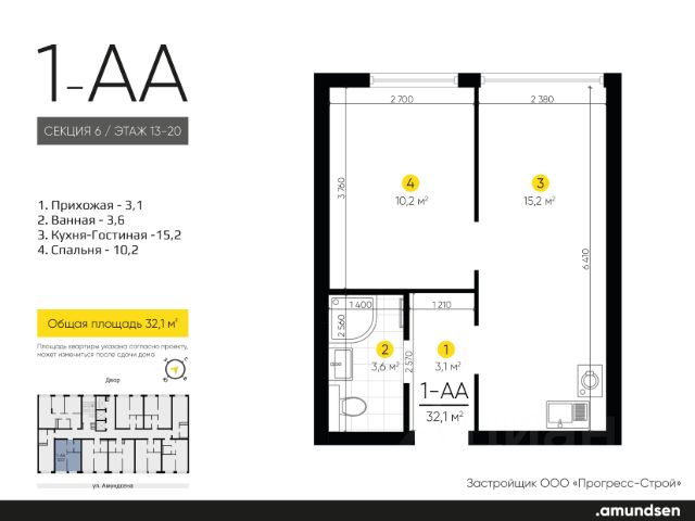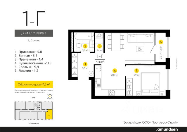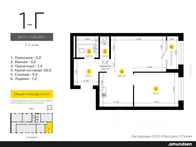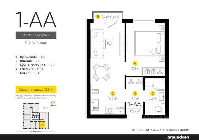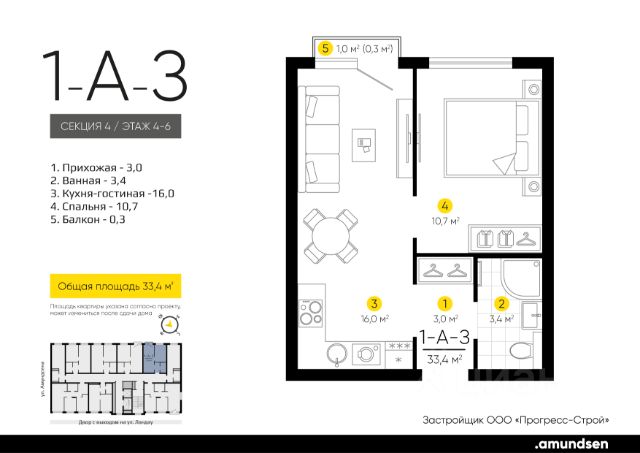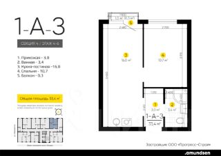 Жилой квартал "Amundsen" - для себя, для семьи, для жизни и развития. Авторская концепция проекта эффектно выделяется в 3 особенностях комплекса: фасады, двор и места общего пользования. AMUNDSEN ПРОЕКТ С ХАРАКТЕРОМ ВЕЛИКОГО ПЕРВООТКРЫВАТЕЛЯ. 4 СЕЗОНА: Двор-трансформер позволяет активно использовать все площадки круглый год. В холодное время года санки, коньки и снежные бои за главную башню. В теплое время источник наполняет двор водой и прохладой. Работают площадки для активных игр и спокойного отдыха. 6 ДЕТСКИХ ПЛОЩАДОК: Мы разделили площадки по возрастным группам для малышей и детей постарше. Качели, аттракционы, водные и активные игры созданы, чтобы познавать мир. 5 ПЛОЩАДОК ДЛЯ СПОКОЙНОГО ОТДЫХА: За счет игры с ландшафтом мы создали приватные зоны, украсили пространство разнотравьем, оживили двор источником. Шум воды, лежаки, беседки, парк места, где ты почувствуешь течение жизни. AMUNDSEN ИДЕАЛЬНОЕ МЕСТО ДЛЯ ЖИЗНИ И РАЗВИТИЯ. - Жилой квартал расположен в экологически чистом районе в окружении двух лесных массивов. - Новые современные школы и детские сады. Спортивный кластер для занятий. - Главный холл пространство для всех. Для самых маленьких игры, для взрослых кафе с ярким дизайном, тихий коворкинг, места для отдыха и светлый, просторный атриум. - Детские площадки "будущего" с оригинальным подходом к созданию игровой среды. - Безопасная территория. Круглосуточная охрана, видеонаблюдение 24/7, электронная система доступа, двор без машин. Застройщик ООО СЗ "Прогресс-Строй", проектная декларация на сайте наш.дом.рф