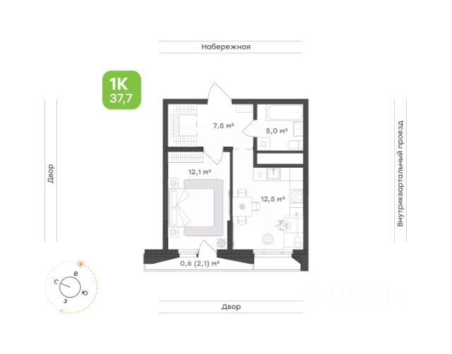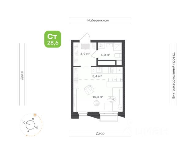 Всё нужное рядом Выделенная зона кухни формирует открытое пространство, в котором легко готовить любимые блюда и наслаждаться общением с друзьями Зона гостиной и спальни позволяет создать личный уголок для спокойного сна и тёплых бесед с гостями Санузел оборудован душевой и местом под стиральную машину, что обеспечивает практичность и удобство в повседневной жизни Просторная прихожая встречает вас продуманным местом для хранения, создавая порядок с самого порога