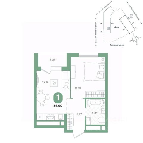 Квартира находится в ЖК "Бодровский" от федерального застройщика "Паритет Девелопмент". Это жилой комплекс комфорт-класса с современной архитектурой, расположенный в Екатеринбурге в районе улиц Патриса Лумумбы и 2-й Новосибирской. Добраться от него до центра города можно всего за 25 минут, дорога до ЕКАДа займет 12 минут. В окружении жилого комплекса есть шесть детских садов, пять школ, три больших парка, пять спорткомплексов, в том числе курортный комплекс Уктус. Квартал состоит из двух секций переменной этажности (от 14 до 24 этажей) и подземного паркинга с кладовыми, к которым можно будет спуститься на лифте. На первых этажах предусмотрены коммерческие помещения: жители смогут сделать маникюр, воспользоваться услугами ателье, выпить кофе с круассаном, не покидая своего района. Ввод в эксплуатацию в III кв. 2027 года. Территория комплекса огорожена от машин и посторонних людей. Озеленение с многолетними растениями и деревьями создает ощущение близости к природе. Двор наполнен всем необходимым: песочницы и качели для самых маленьких, интерактивная башня для детей постарше, воркаут-зона и места для отдыха. На всей территории реализована безбарьерная среда. В парадных выполнен авторский ремонт. За счет панорамного остекления и 4-метровых потолков там всегда много естественного света. Предусмотрены колясочные с местами для хранения спортинвентаря и креплениями для велосипедов. В проекте представлены студии, классические одно- и двухкомнатные варианты, а также двух-, трех- и четырехкомнатные квартиры в евроформате площадью от 25,32 до 76,65. Все планировки — функциональные и подходящие новоселам как с детьми, так и без них. Есть варианты с лоджиями, где можно организовать дополнительное пространство для отдыха, спорта или работы, а еще квартиры с мастер-спальней, гардеробной, двумя санузлами. В каждой предусмотрена вытяжная вентиляция с естественным побуждением, счетчики с телеметрией и корзины для кондиционеров. Характеристики квартиры: этаж - 8 количество комнат - 2 номер помещения - 217 площадь квартиры - 39,82 кв.м Чтобы сэкономить время и деньги, можно приобрести квартиру сразу с ремонтом от застройщика. На выбор 3 конфигурации: базовый, с кухонным гарнитуром, с кухонным гарнитуром и другой мебелью - в светлом и темном оттенках. Ремонт можно включить в ипотеку.