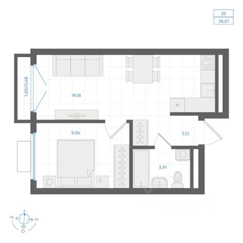 Продаётся 1-комнатная квартира в строящемся доме (Дом 4.1.9), срок сдачи: III-кв. 2026, общей площадью 36.18 кв.м., на 2 этаже. Новый жилой комплекс "Центральный парк" от застройщика "СЗ Максимум" расположен по адресу: г. Екатеринбург, улица Амундсена.