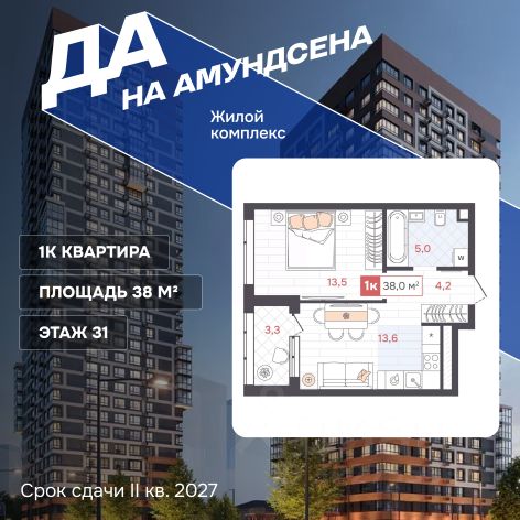 Жилой комплекс "Да на Амундсена" воплощает собой современный подход к городскому строительству, представляя собой 2-секционное монолитно-кирпичное здание. Первая очередь строительства включает высотные секции на 31 и 25 этажей, относящиеся к классу комфорт+. Комплекс спроектирован в рамках масштабного проекта редевелопмента бывшей территории, предусматривающего создание семи кварталов, связанных линейным парком. Предусмотрены квартиры с различными планировками и предчистовой отделкой, а также современные удобства, такие как уютные места для отдыха, зеленые прогулочные зоны с функциональными пространствами, включая зоны для пикников и летние кафе. Комфорт и безопасность В жилом комплексе "Да на Амундсена" предусмотрены все условия для комфорта и безопасности жителей. В каждом корпусе имеются пассажирские и грузовые лифты, которые спускаются до двухуровневого подземного паркинга, обеспечивая удобный доступ к автомобилям. Территория комплекса огорожена и охраняется, оборудована системами видеонаблюдения для безопасности жителей. Во дворе безопасная среда без доступа автомобилей. Также предусмотрены помещения для хранения колясок и спортивного инвентаря, индивидуальные келлеры на этажах и подземный паркинг. Архитектура Архитектурная концепция комплекса включает современное проектирование с использованием светопрозрачных входных групп, витражного остекления и просторного лобби. Ландшафтный подход предусматривает создание линейного парка, в который интегрированы зеленые оазисы и теневые навесы, подчеркивающие стиль и эстетику комплекса. Благоустройство Территория комплекса благоустроена для активного и семейного отдыха. Жители смогут наслаждаться детскими площадками, предназначенными для детей всех возрастов, спортивными зонами, стритбольной площадкой и беговыми дорожками. Органы планировки предусмотрели зоны для пикников и летнее кафе, что делает территорию многофункциональной. Окружение и досуг Жилой комплекс "Да на Амундсена" окружен всем необходимым для комфортного проживания: в шаговой доступности расположены школы, детские сады, медицинские учреждения и супермаркеты. Также на территории и в непосредственной близости от комплекса находятся кафе, рестораны и торговые центры. Для любителей природы обустроены зеленые прогулочные тропинки и лаунж зоны, которые завершает амфитеатр, позволяя насладиться культурными мероприятиями прямо у дома.
