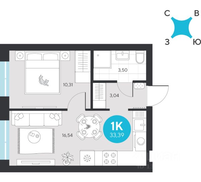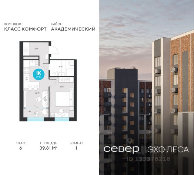 Продаётся квартира площадью 33.39 м2 в жилом комплексе "Эхо леса". Квартира находится на 9 этаже, жилая площадь квартиры 10.31 м2, площадь просторной кухни — 16.54 м2. Среди особенностей планировки — изолированные комнаты с окнами на одну сторону, 1 совмещённый санузел. Срок сдачи — I кв. 2028 Жилой комплекс "Эхо леса" — это: - дом в эко-стиле - двор с выходом в лесопарк - лаконичная архитектура - развитая инфраструктура вокруг квартала Инфраструктура В окружении проекта — вся необходимая инфраструктура: детские сады, школы, спортивный комплекс, продуктовые магазины, аптеки, кофейни, рестораны и салоны красоты. Благоустройство Концепция двора-парка продолжает тему леса. Ландшафт с продуманным всесезонным озеленением дополняют акценты: сухой ручей из камней, столы и навесы из натурального дерева, эко-тропы, фонтан и променад. Для взрослых предусмотрены пешеходные и велодорожки, для детей — игровые площадки для разных возрастов. Архитектура Переменная высота секций создаёт выразительный архитектурный облик. На фасадах — игра контрастных, при этом природных оттенков. Динамики зданию придают текстуры материалов: фактурной штукатурки и клинкерного кирпича. Лобби Интерьер в холле продолжает концепцию квартала и выполнен в эко стиле. В отделке используются элементы природных материалов с изображениями листвы и деревьев. Паркинг Тёплый подземный паркинг организован как единое пространство с собственным дизайном. Кладовые Индивидуальные помещения на техническом этаже — способ сохранить пространство в квартире. Попасть в кладовые можно на лифте. Планировки В продуманных планировках выделены тихие и шумные зоны. Приватные спальни и кабинеты спрятаны от маршрутов домашнего движения, а кухни-гостиные с барной стойкой вместо стены — всегда готовы к семейным праздникам. Из окон квартир открываются живописные виды на лес.